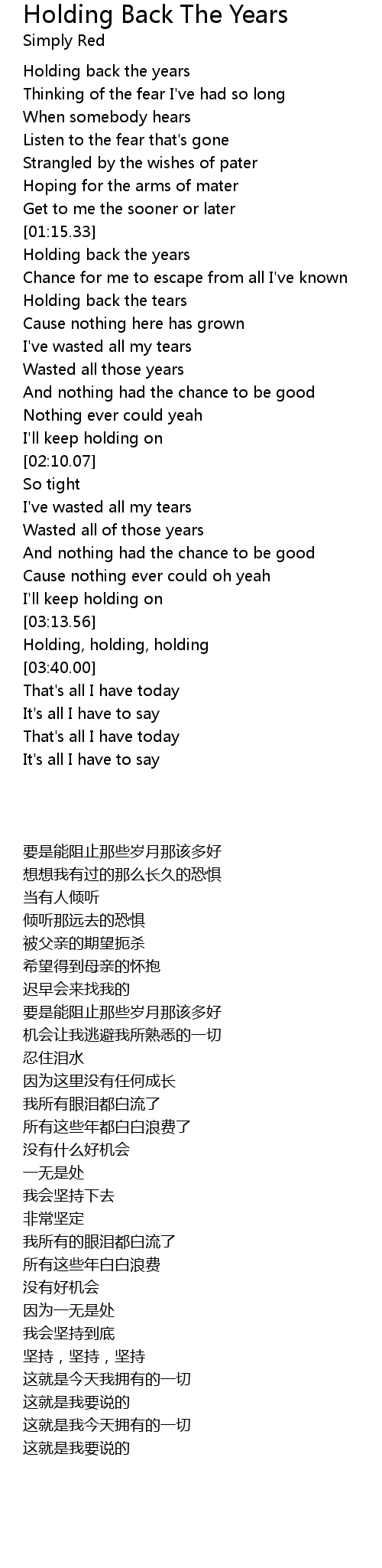 Holding back the years |