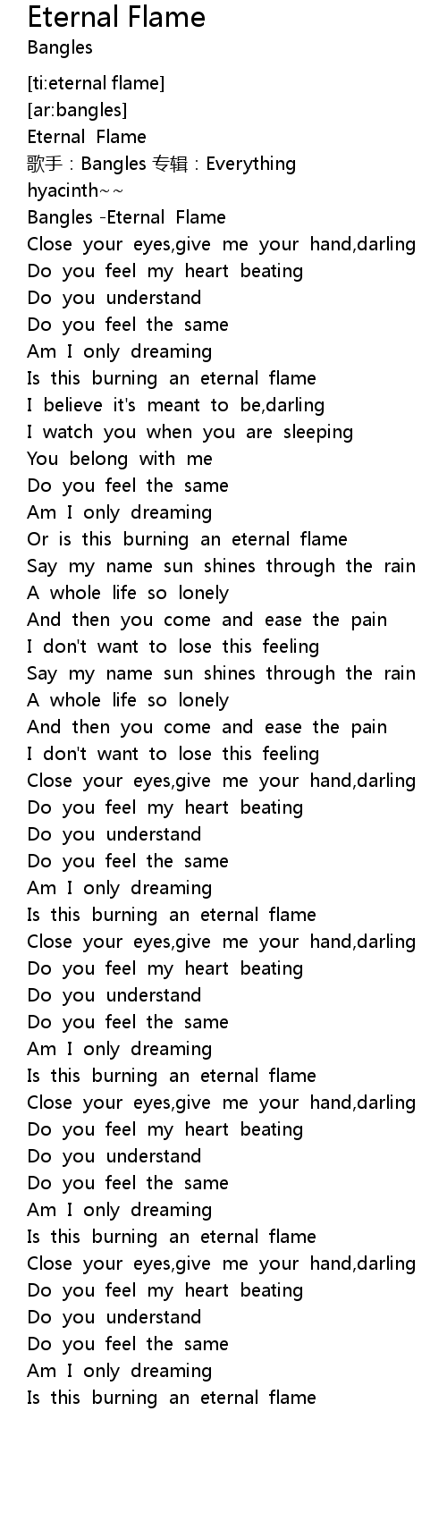 | [00:04.854] | Bangles Eternal Flame |