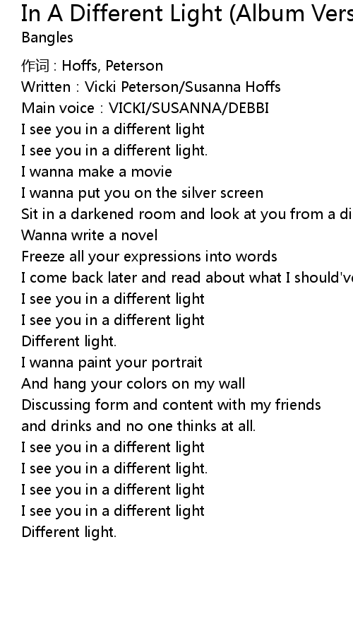 | I see you in a different light | |