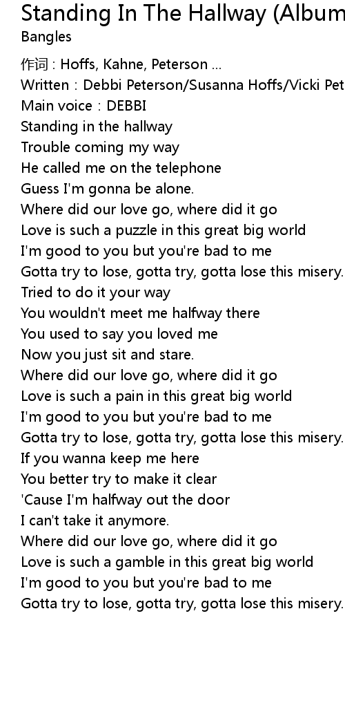 | Song | Standing In The Hallway (Album Version) |