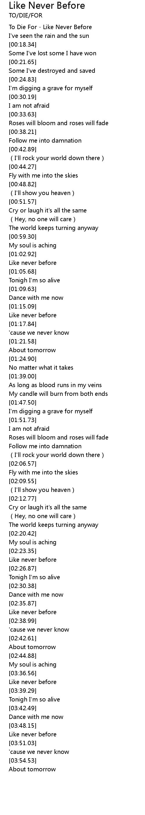 | [00:00.99] | To Die For Like Never Before |