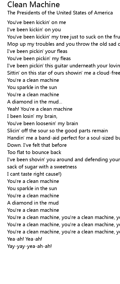 You're a clean machine, you're a clean machine, you're a clean machine, yea-ah! |