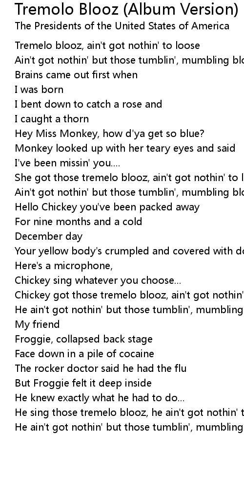 Chickey got those tremelo blooz, ain't got nothin' to loose |