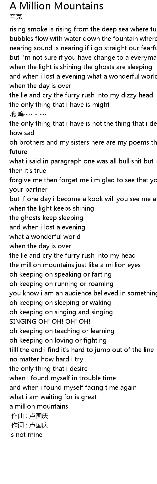 | Song | A Million Mountains |