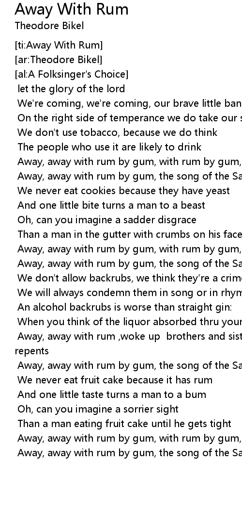 Away, away with rum by gum, with rum by gum, with rum by gum |