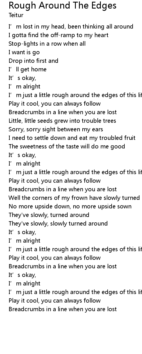 | I’m just a little rough around the edges of this life | |