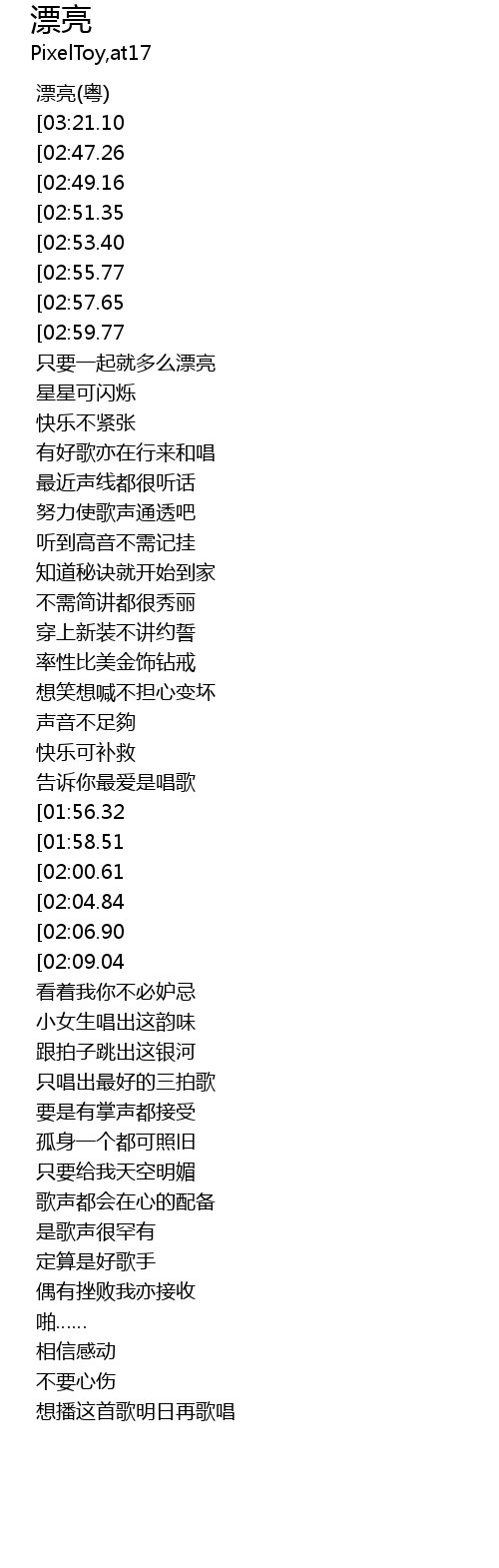 | [00:14.30] [03:21.10] | PixelToy-漂亮(粤) |