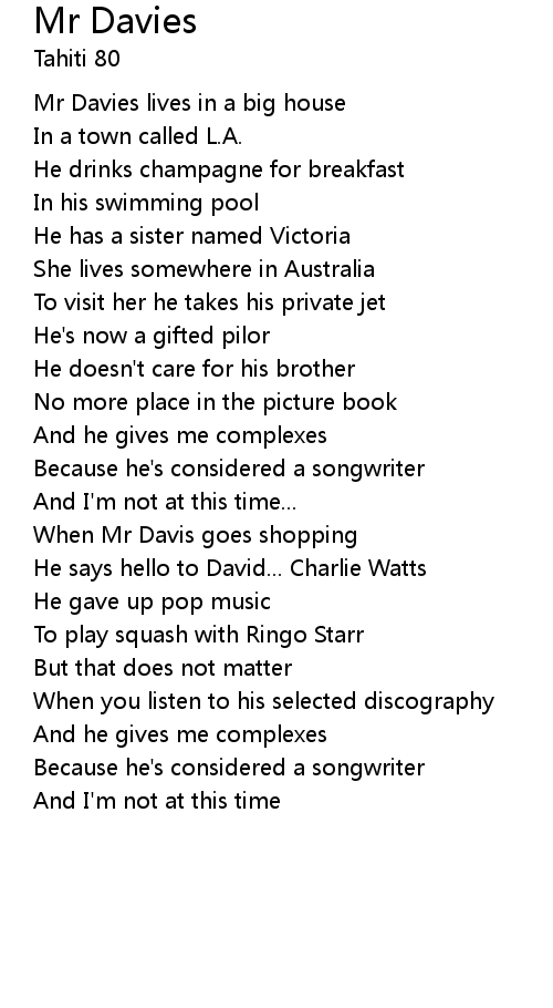 | Mr Davies lives in a big house | |