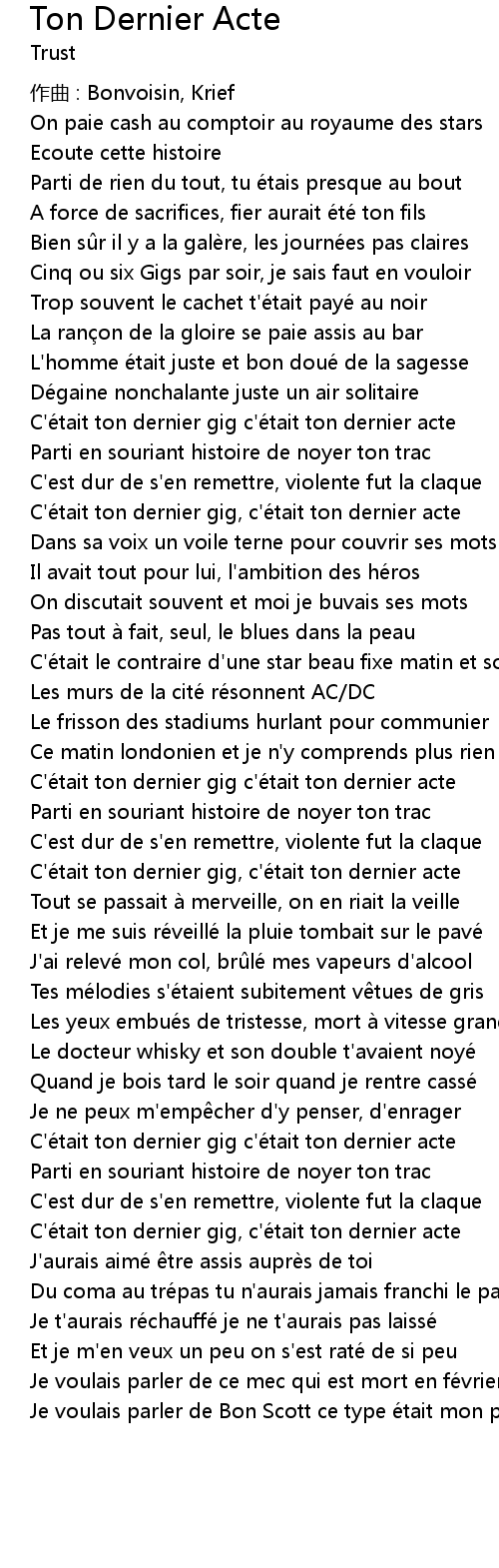 | C'e tait ton dernier gig c'e tait ton dernier acte | |