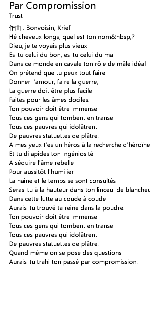 | Aurais-tu trahi ton passé par compromission. |