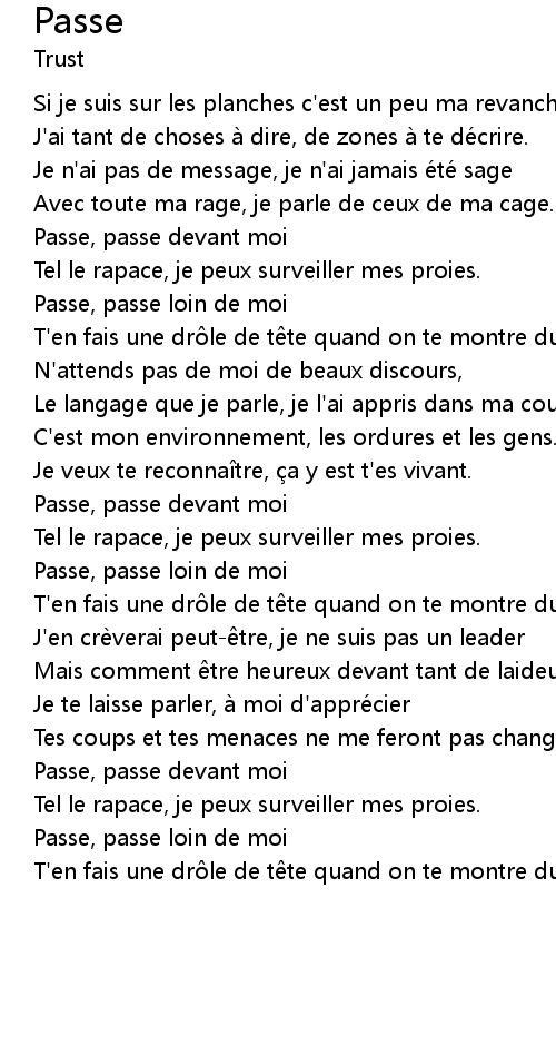 | Song | Passe |