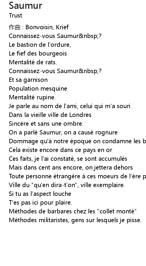 | Song | Saumur |
