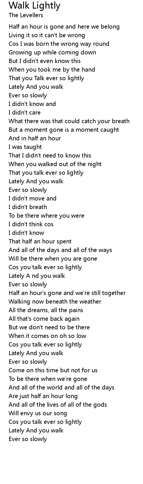 Lately A nd you walk |
