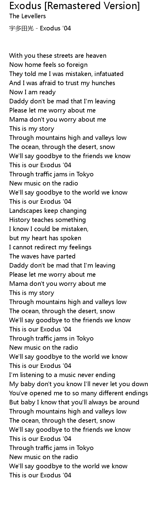 | Song | Exodus [Remastered Version] |