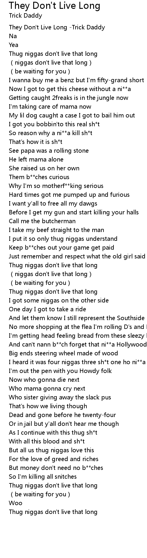| [00:00.00] | They Don' t Live Long Trick Daddy |