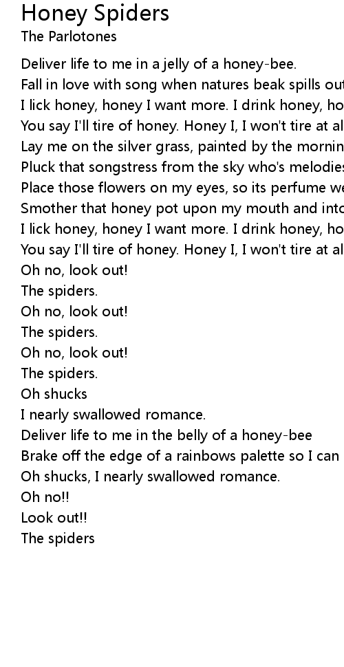 I lick honey, honey I want more. I drink honey, honey I drink it all. |