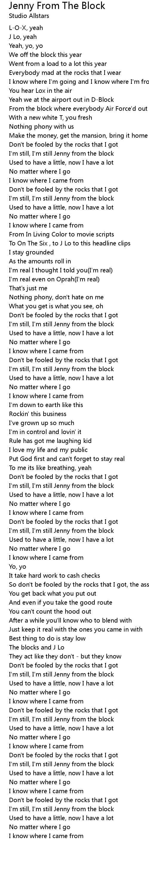 I'm still, I'm still Jenny from the block |