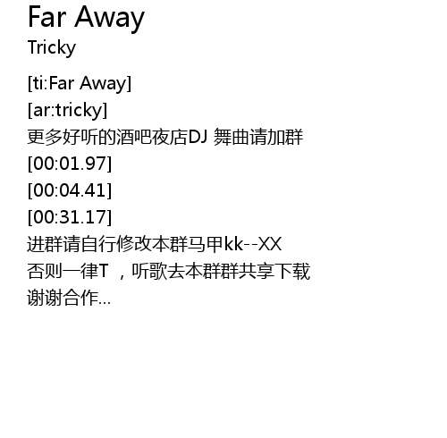 | [00:31.83] | 进群请自行修改本群马甲kk--XX |