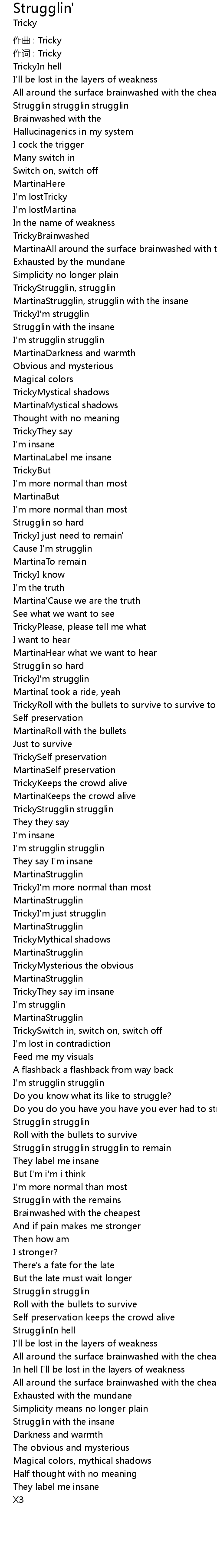 | TrickyI' m strugglin | |