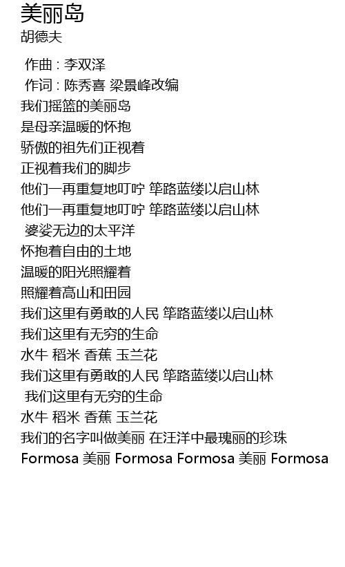| [03:32.329] | Formosa 美丽 Formosa Formosa 美丽 Formosa |