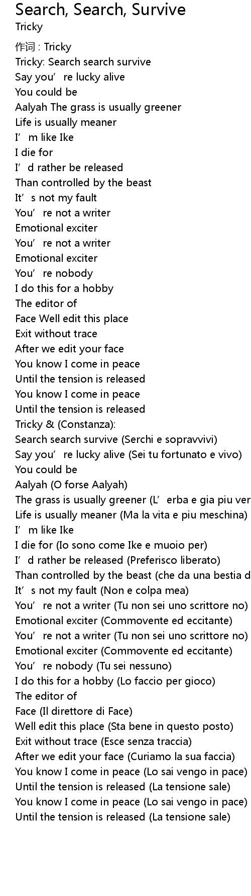 | 作词 : Tricky | |