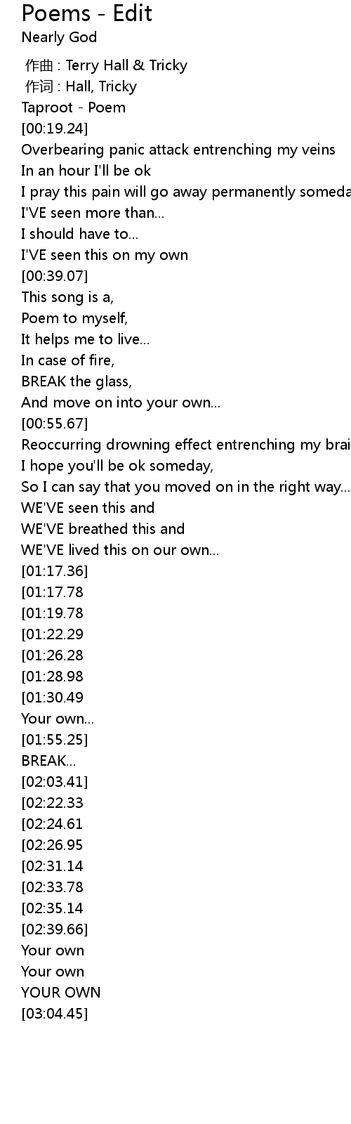 | [00:41.38] | Poem to myself, |