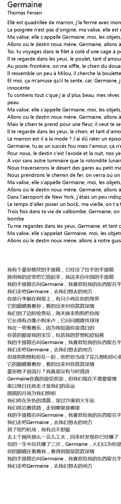 | [02:27.48] | Allons où le destin nous mène, Germaine, allons à notre guise |