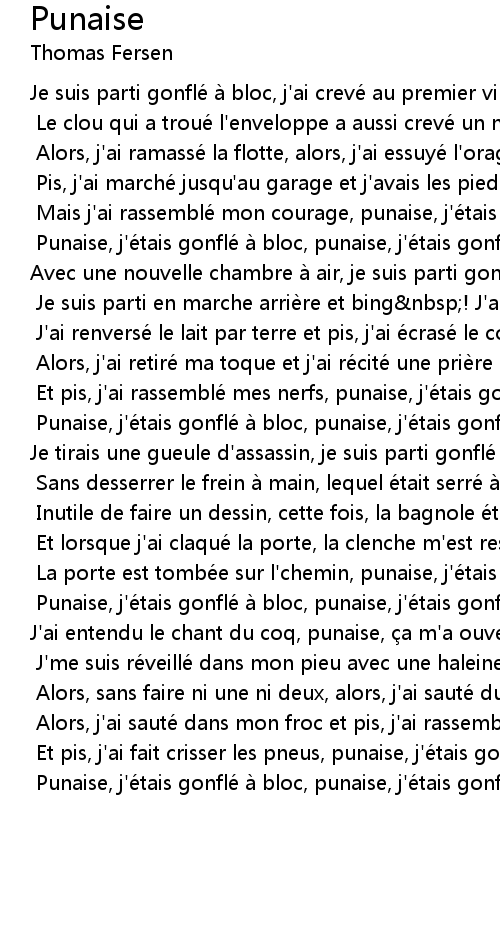 | Punaise, j'e tais gonfle a bloc, punaise, j'e tais gonfle a bloc nbsp! |
