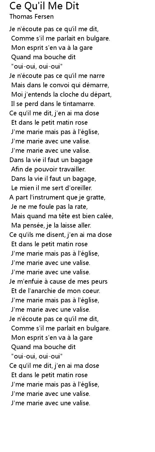 | Ce qu'ils me disent, j'en ai ma dose | |