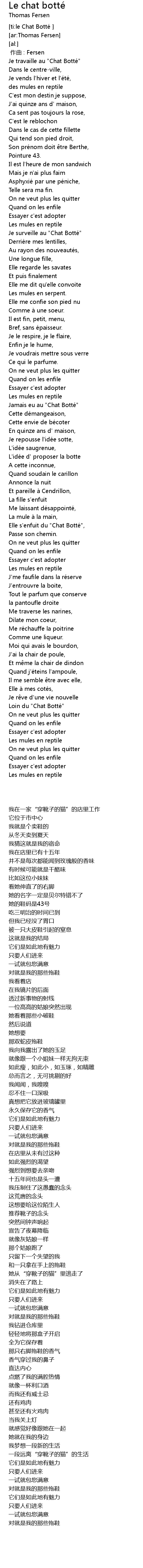 | [00:07.74] | Je travaille au " Chat Botté" |