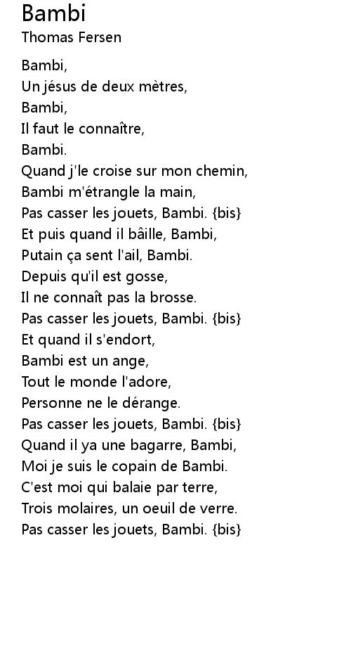 | Bambi m'e trangle la main, | |