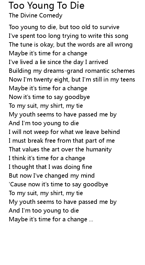 And I'm too young to die |