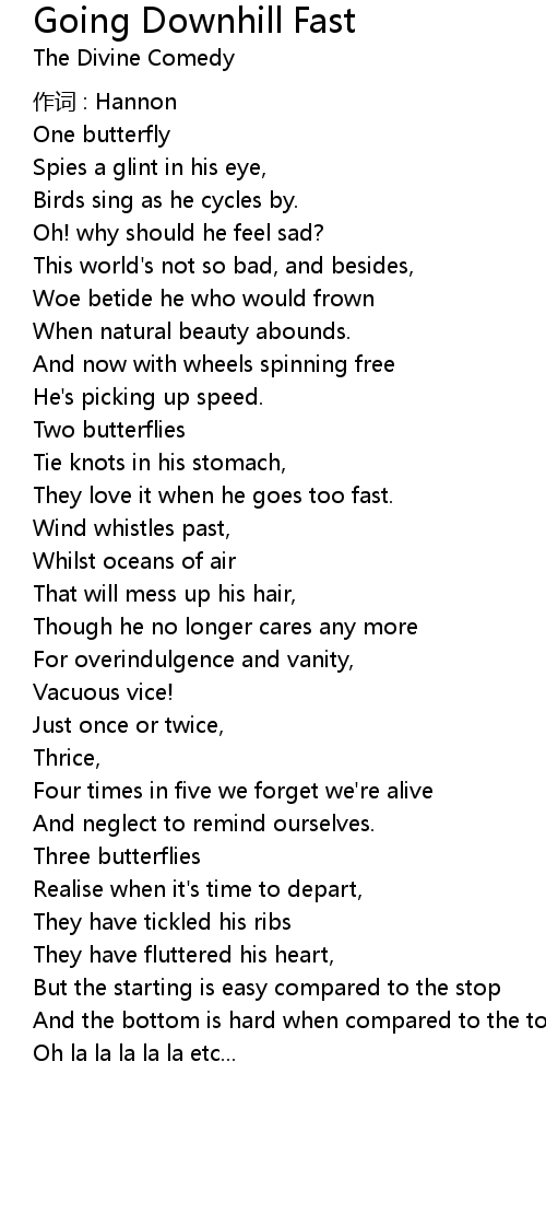 | Song | Going Downhill Fast |