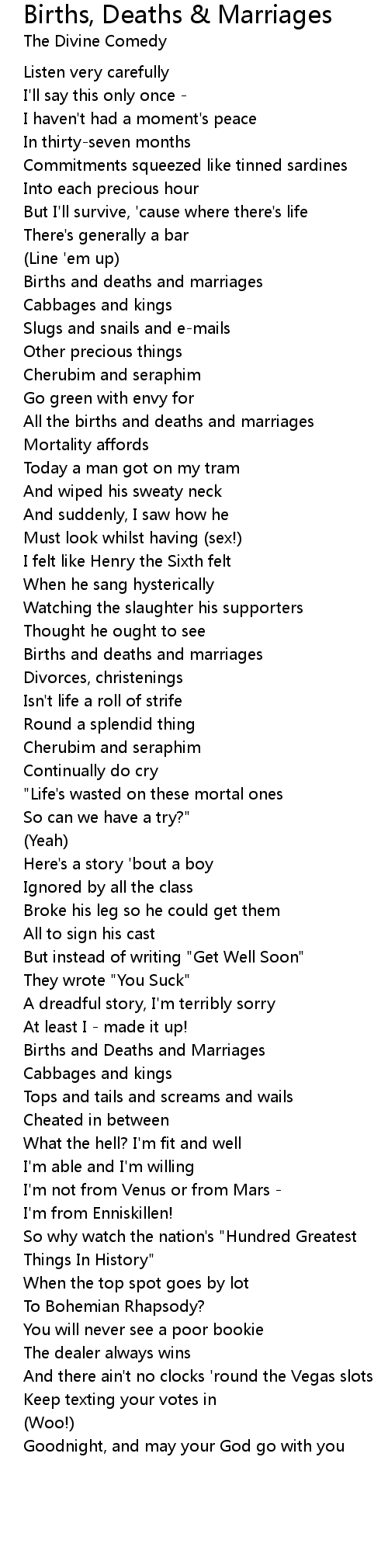 All the births and deaths and marriages |