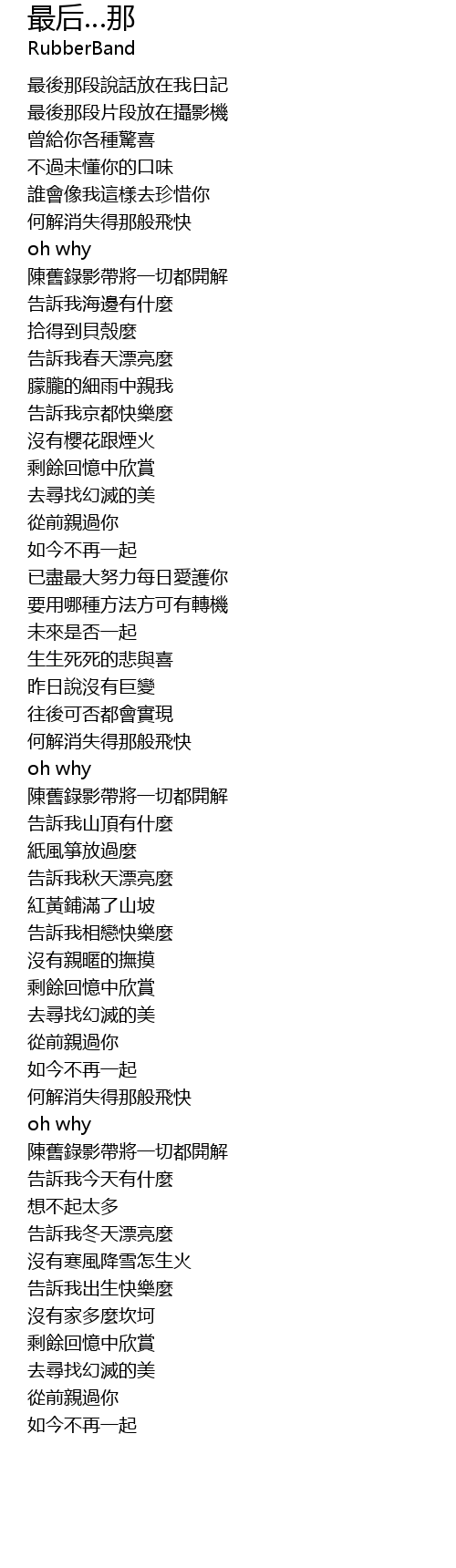 | [00:01.33] | zuì hòu nà duàn shuō huà fàng zài wǒ rì jì |