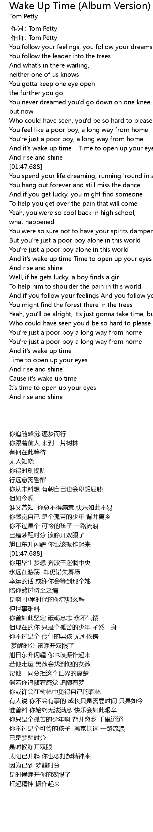 | [00:01.000] | zuò qǔ : Tom Petty |