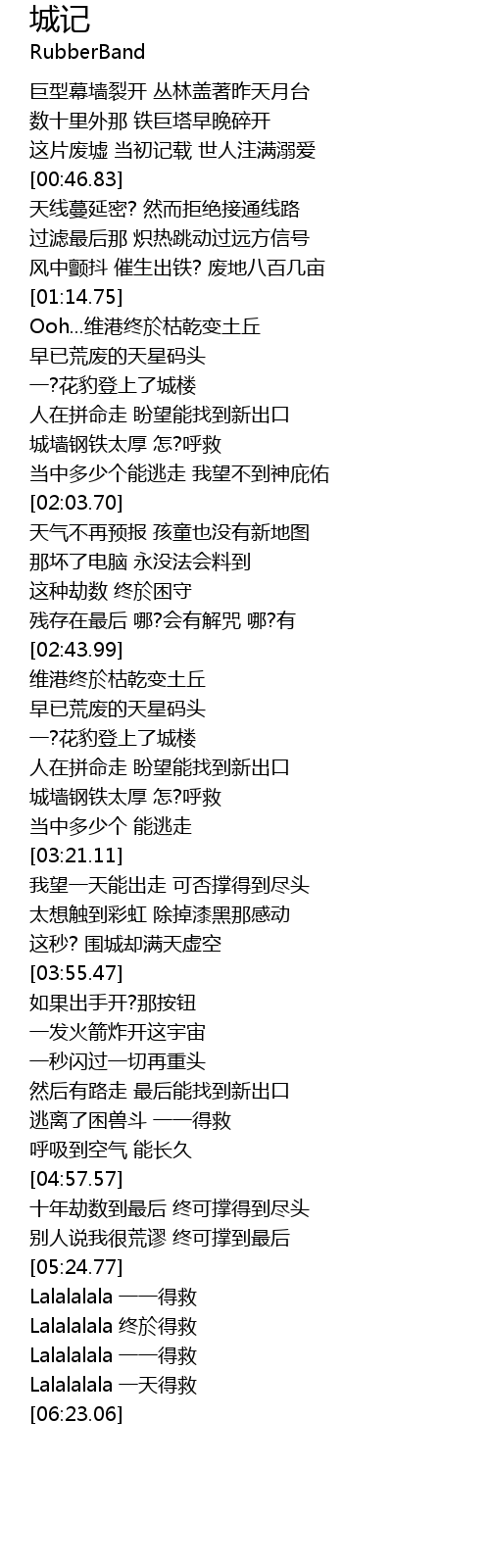 | [03:06.10] | 城墙钢铁太厚 怎?呼救 |