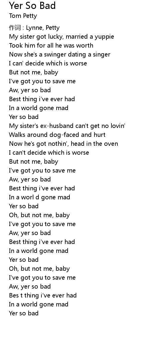 | Song | Yer So Bad |