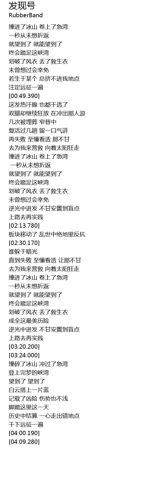 | [02:50.850] | 撞进了冰山 卷上了急湾 |