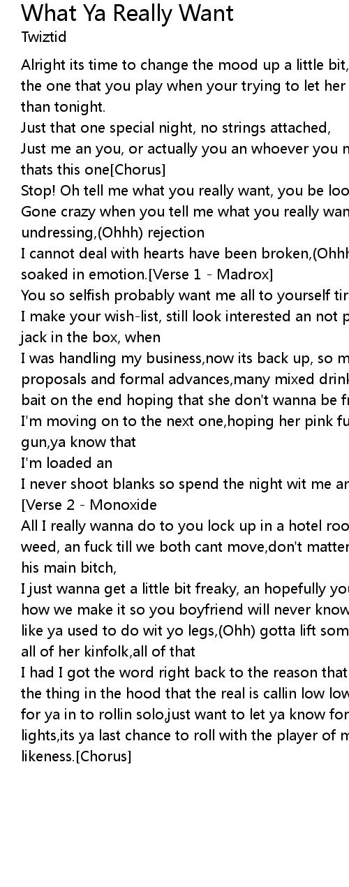 I never shoot blanks so spend the night wit me an in the mornin you'll be thankful.[Chorus][Verse 2 - Monoxide] |