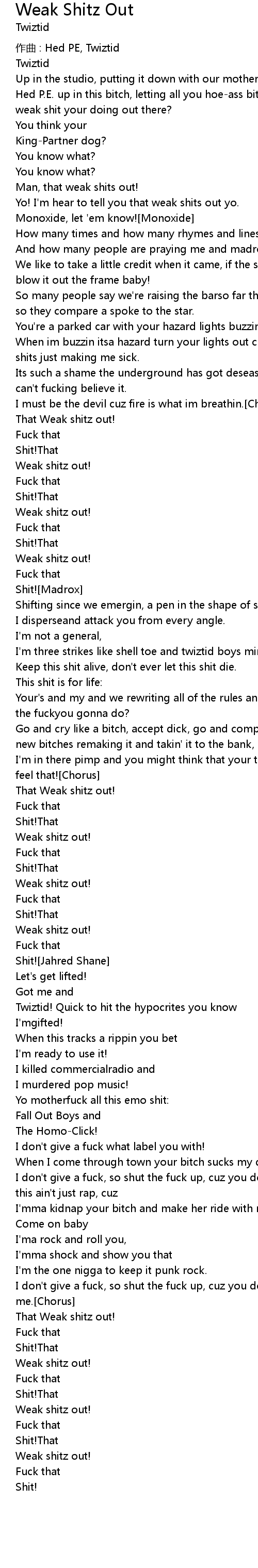 | Hed P.E. up in this bitch, letting all you hoe-ass bitches know, you know that weak shit your doing out there? | |