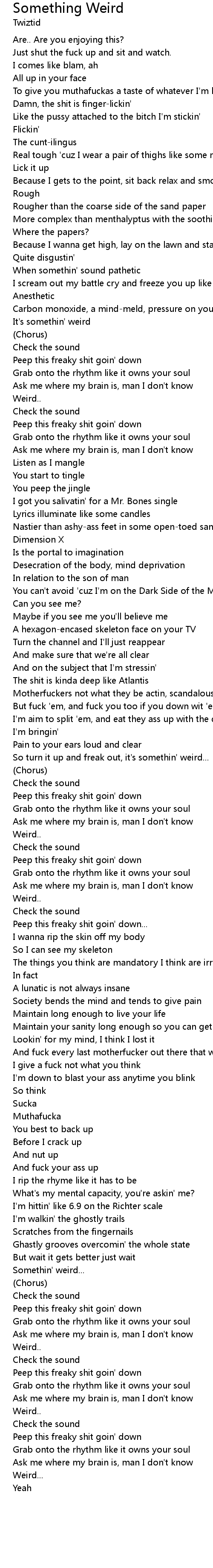 So turn it up and freak out, it's somethin' weird... |