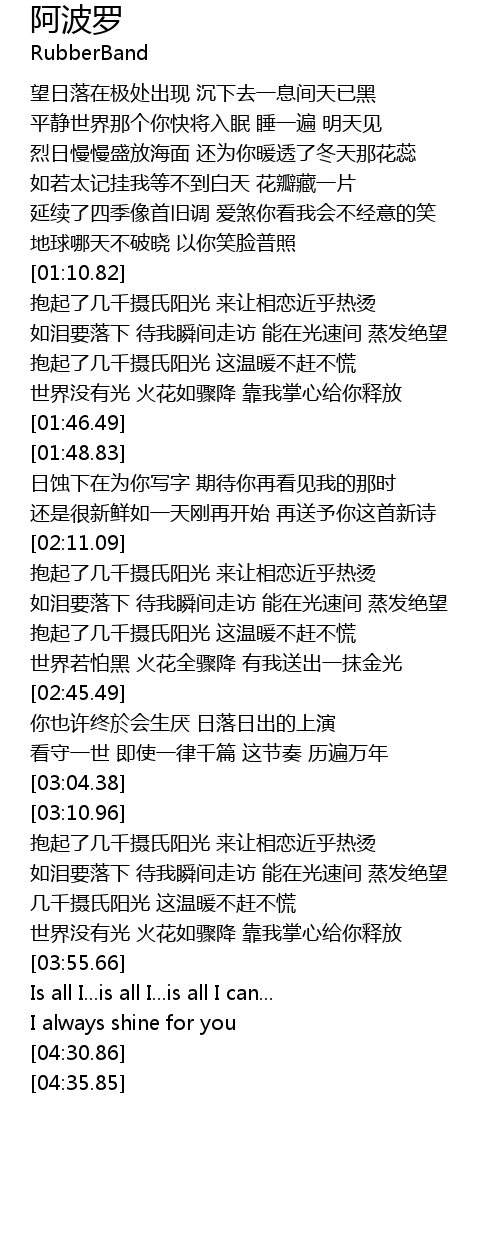 | [01:51.39] | 日蚀下在为你写字 期待你再看见我的那时 |