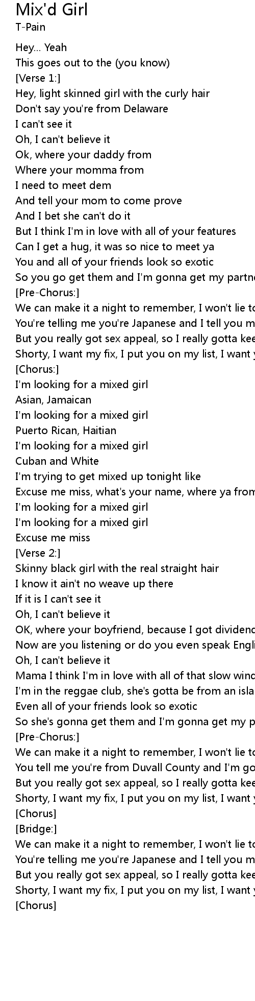 | Excuse me miss, what's your name, where ya from, can I come | |