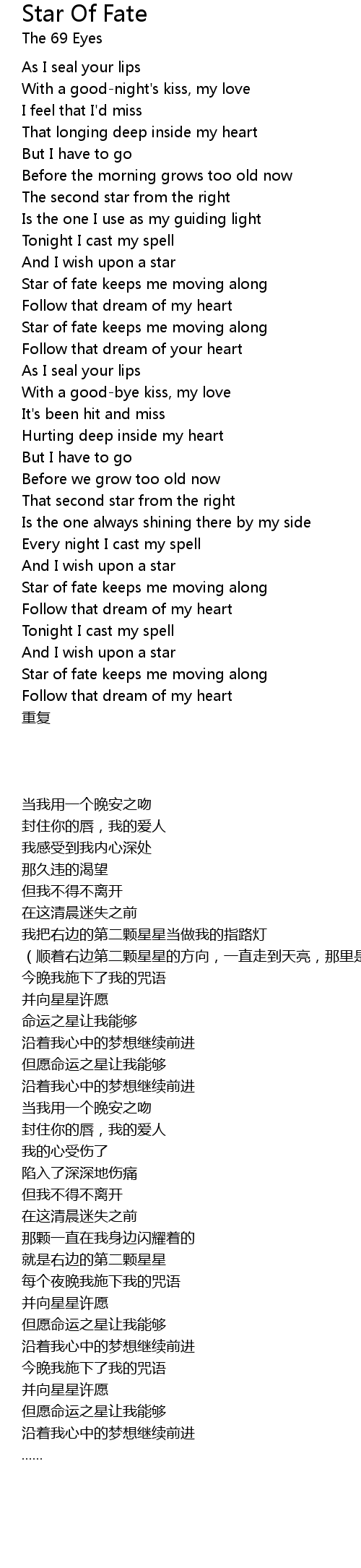 | [00:29.69] | With a goodnight' s kiss, my love |