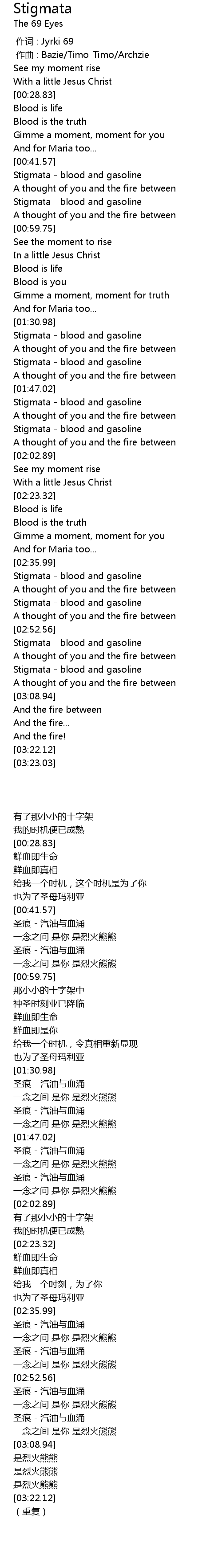 | [02:52.71] | Stigmata blood and gasoline |
