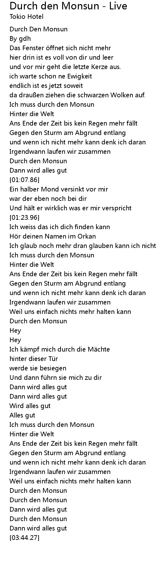 | [00:41.82] | Ans Ende der Zeit bis kein Regen mehr f llt |
