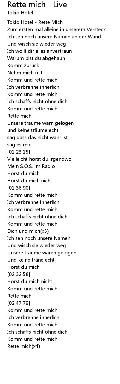 | [00:01.10] | Tokio Hotel - Rette Mich |