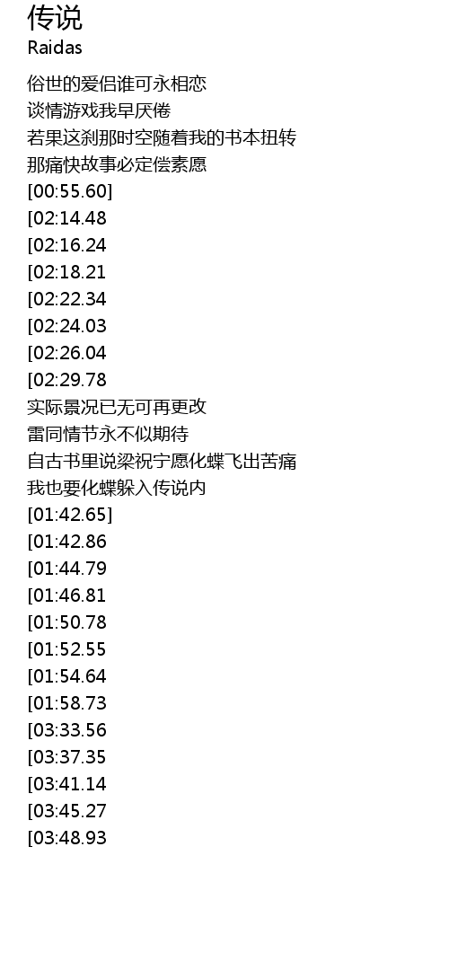 | [01:39.80] | 我也要化蝶躲入传说内 |