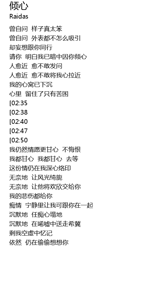 | [02:53] | 我都甘心 我都甘心 去等 |